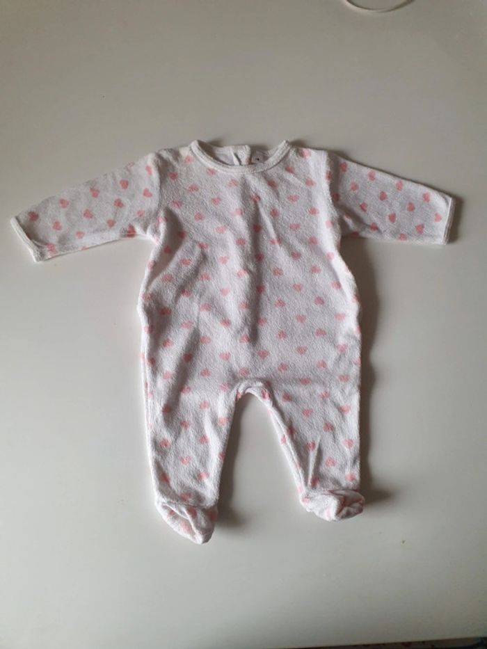 Grenouillère avec des petits coeurs en très bon état, peu porté 1 mois