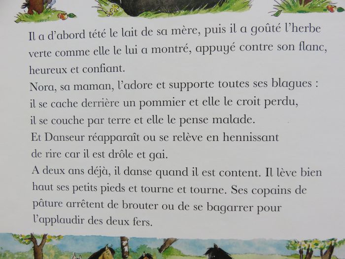 💰 PRIX FIXE quelque soit le nombre d'articles du dressing ⚠️ ÉTAT : Très bon état ⚠️ DÉTAILS : Relié. Couverture cartonnée ⚠️ RÉSUMÉ : Un beau jour de printemps dans la campagne normande naît un magnifique petit cheval tout noir. Sa maman le prénomme Danseur. Mais un terrible jour d'orage, la foudre tombe sur le pommier sous lequel elle s'abritait. Danseur est désormais tout seul... En montant dans le van de Sissi, l'oie qui dirige le club hippique de La Haie Fleurie, se doute-t-il de la nouvelle vie qui l'attend 📦 LIVRAISON : Envoi ou remise en main propre sur Lyon