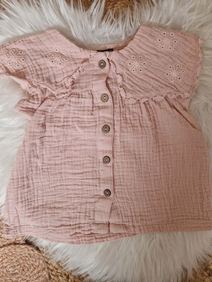 🌸 Magnifique blouse rose à col Kiabi 12 mois - photo numéro 2