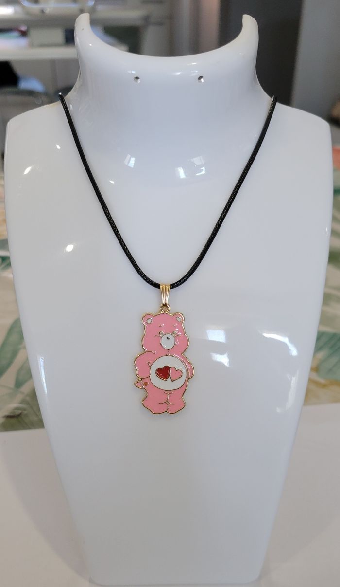 COLLIER BISOUNOURS ROSE CORDELETTE NOIRE ! NEUF ! - photo numéro 3