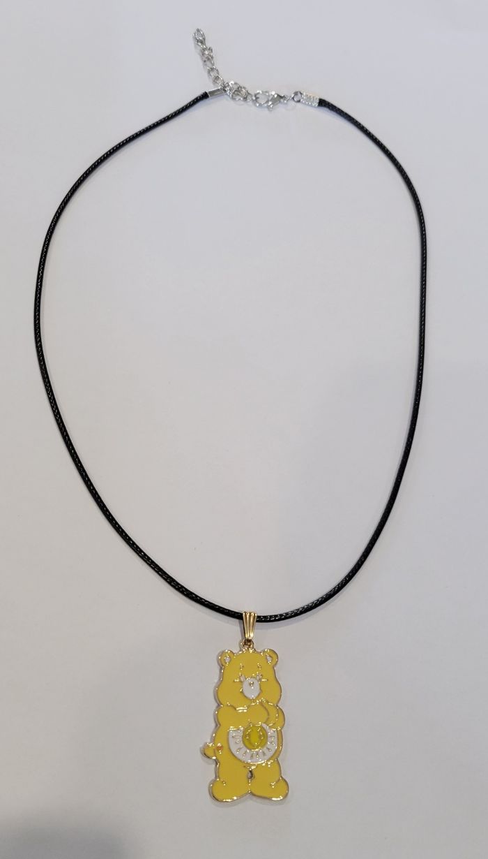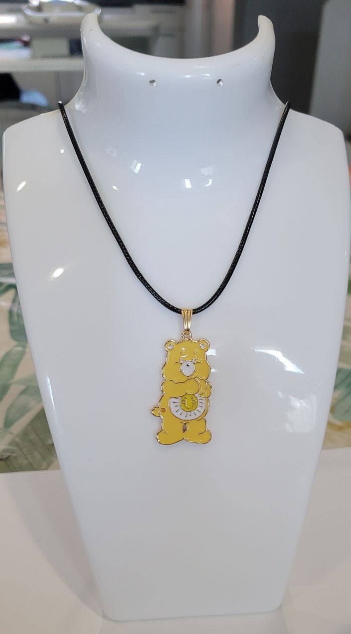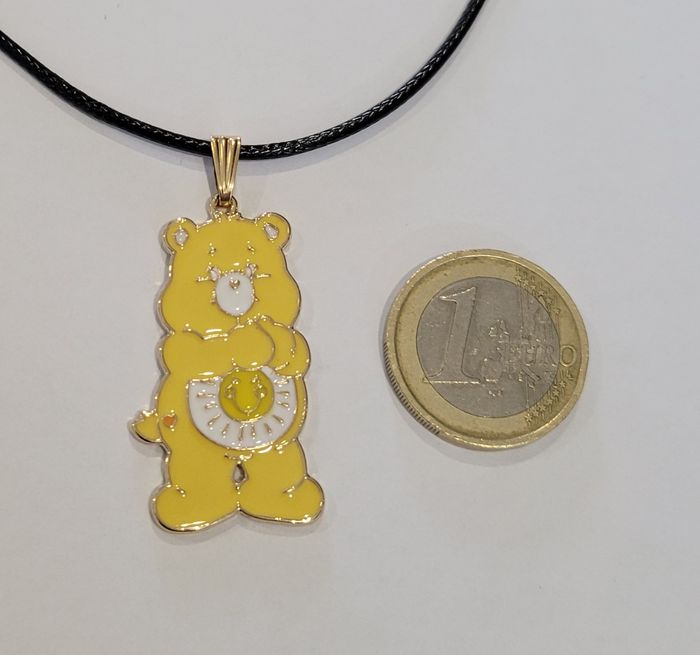 COLLIER BISOUNOURS JAUNE CORDELETTE NOIRE ! NEUF ! collier pendentif BISOUNOURS JAUNE. Longueur de la cordelette noire : 42 cms Dimensions du pendentif BISOUNOURS : 3,5 x 2 cms (pendentif tout en metal) Collier sous blister. Envoi soigné et rapide .