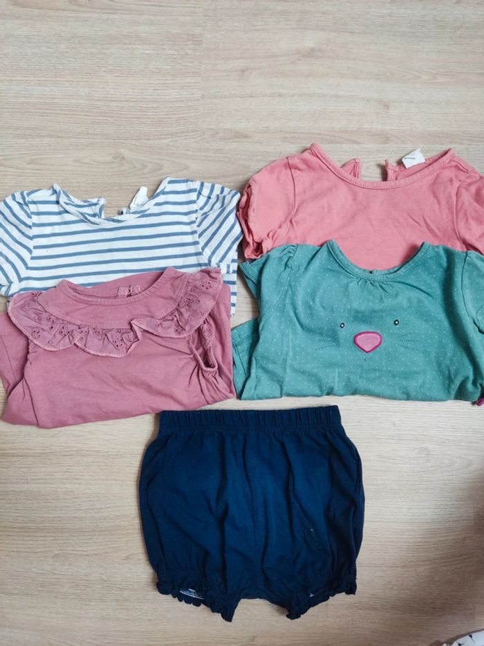 Diverses marques 4 tee shorts 1 short #moulinroty #lotbebefille #été6moisfille #teeshirtfille
