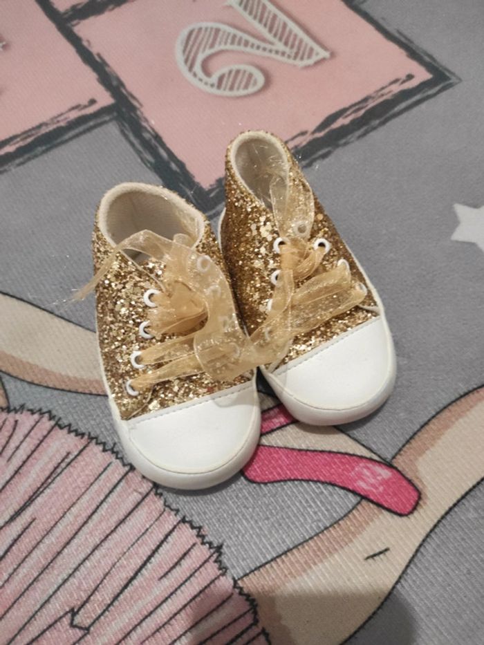 Baskets à paillettes Taille 20 Rarement portés Lacets en ruban
