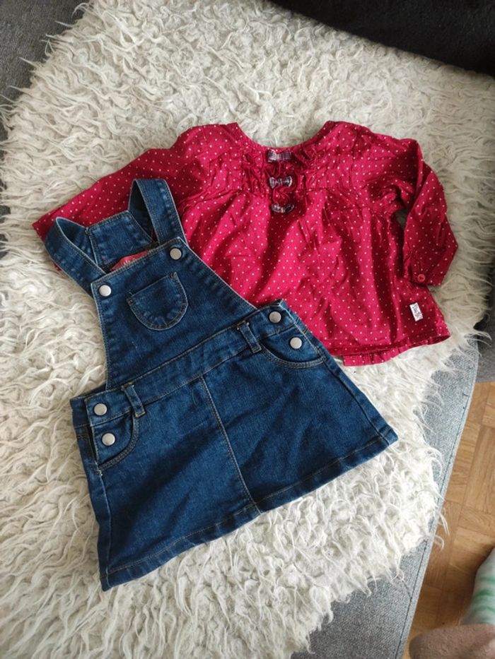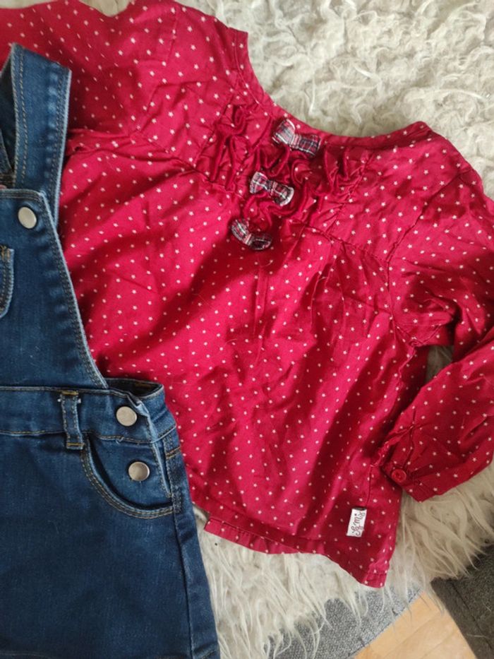 Ensemble bébé taille 9 mois Robe salopette + haut rouge sergent major En très bon état Pour faire des lots ( réductions activés) #shadowstonem9mois