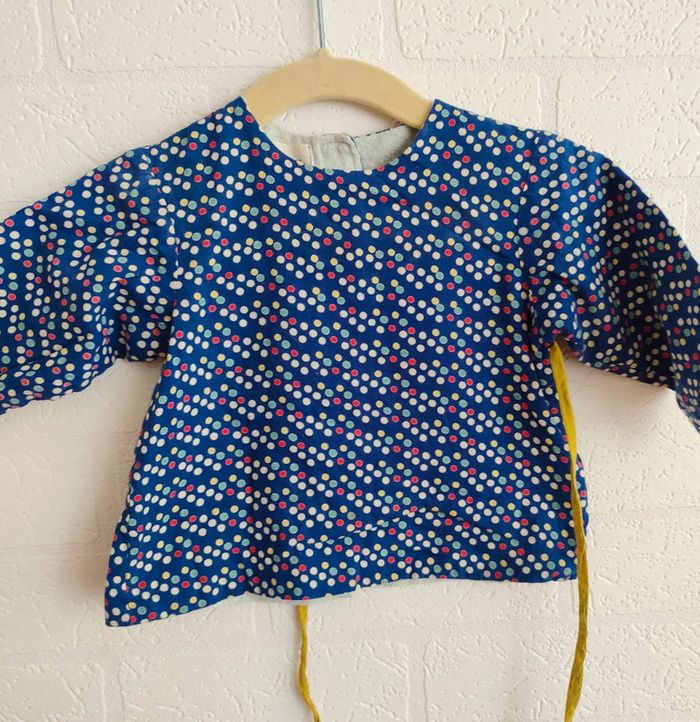 Top manches longues fille Taille 3/6 mois Comme neuf Fermeture au dos à scratch au dos Intérieur blanc Bleu à pois rouge , bleu et blanc Pour faire des lots ( réductions activés ) #shadowstonem6mois
