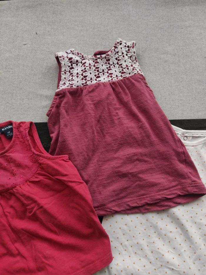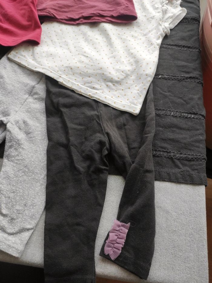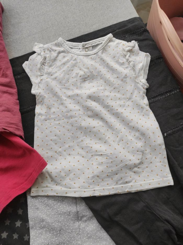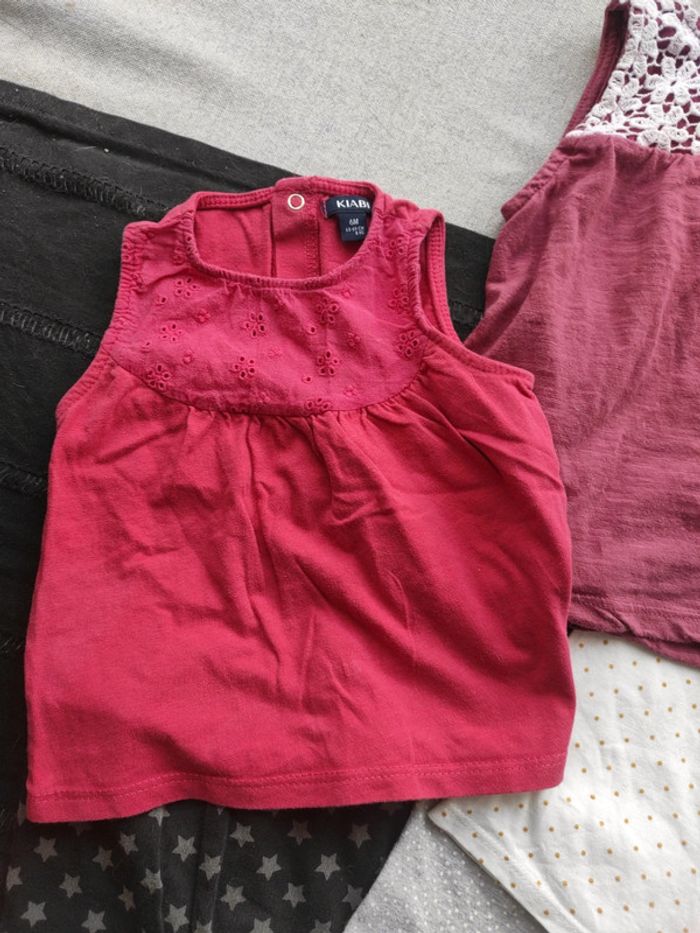 Lot taille 6 mois Trois leggins dont un Okaïdi Un tee shirt blanc manches courte Kiabi , blanc à pois dorées et deux tee shirt sans ma chez Kiabi ( rose ) et Creeks avec détails en dentelle Pour faire des lots ( réductions activés) #shadowstonem6mois