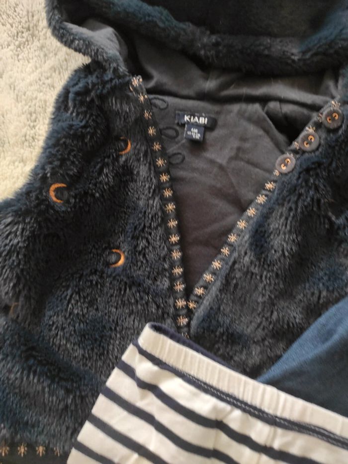 Lot taille 6 mois Tout neuf ou parfait état Gilet sans manches en fourrure bleu marine Kiabi avec motif dorée Legging marinière Z Body moutarde manches longues Robe en jean Jacadi Pour faire des lots ( réductions activés) #shadowstonem6mois
