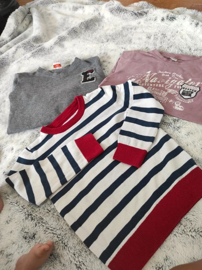 Lot taille 5 ans Deux pulls fin TAO pour le gris , col V 110cm C&A pour le rayé- 110 cm + Top manches longues TAO Pour faire des lots ( réductions activés) #shadowstonem5ans
