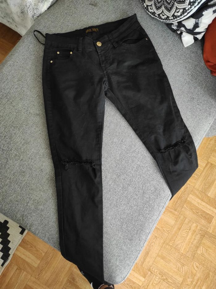 Jean noir skinny Troué aux genoux Rarement porté Taille 40 (mais petit selon moi ) Pour faire des lots ( réductions activés) #shadowstonemfemme