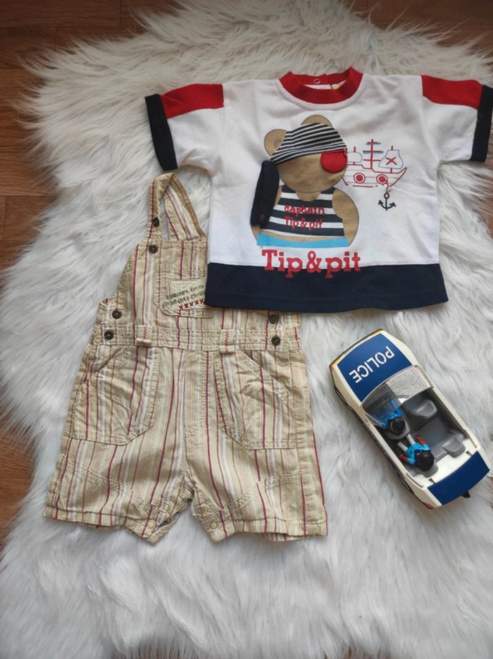 🌹 Très bon état. Il y a juste une toute petite tâche sur le tee-shirt. Cf photo 6. - tee-shirt tirelarigot avec pirate en motif. - salopette kitiwatt rayée beige et rouge. Pour faciliter l'habillement et le changement de couches, salopette au top avec des boutons à pressions un peu partout. #miairis69_garçon12mois #salopettegarçon12mois #teeshirtgarcon12mois #etegarcon12mois