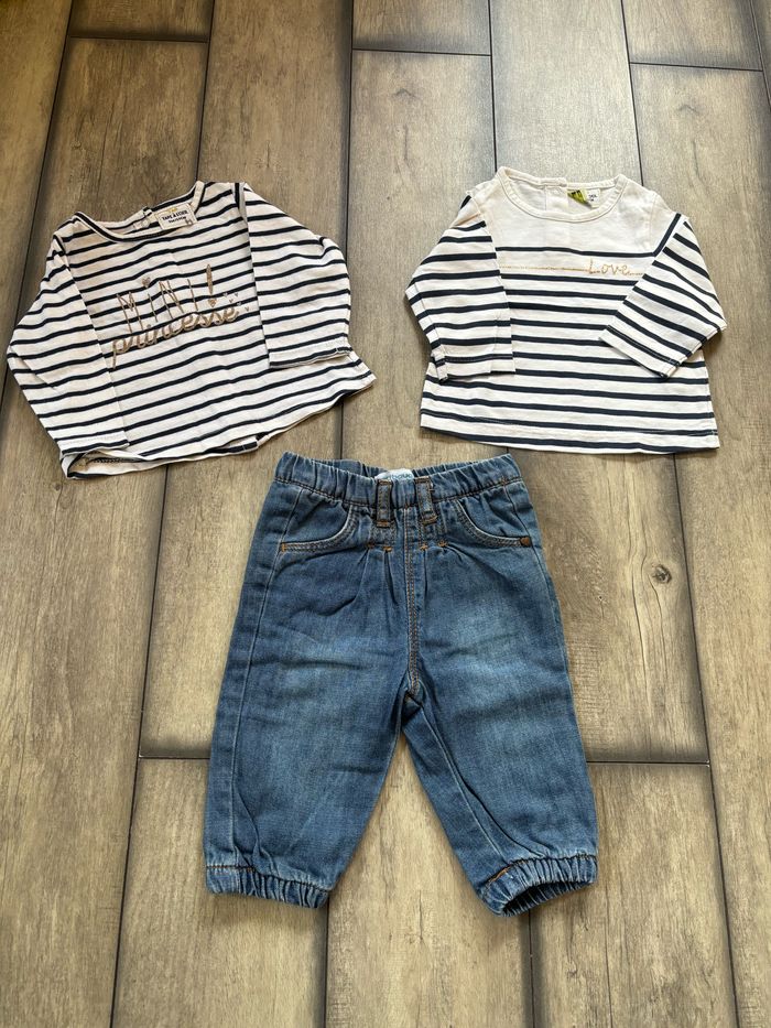 Jean Vertbaudet 3M 2 tshirts marinières ML TAO TBE