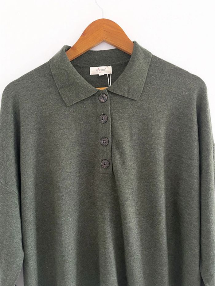 🌟 Polo manches longues kaki avec boutons marron - photo numéro 3