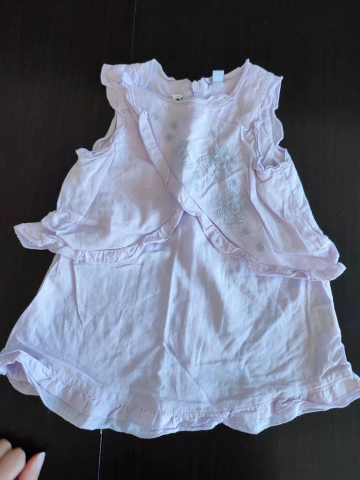 Lot de 3 robes Reste un peu étiquettes prénoms et la robe parme a quelques petites tâches. Les 2 autres sont en très bon état #vente7612moisf #robe12mois #12moisfille