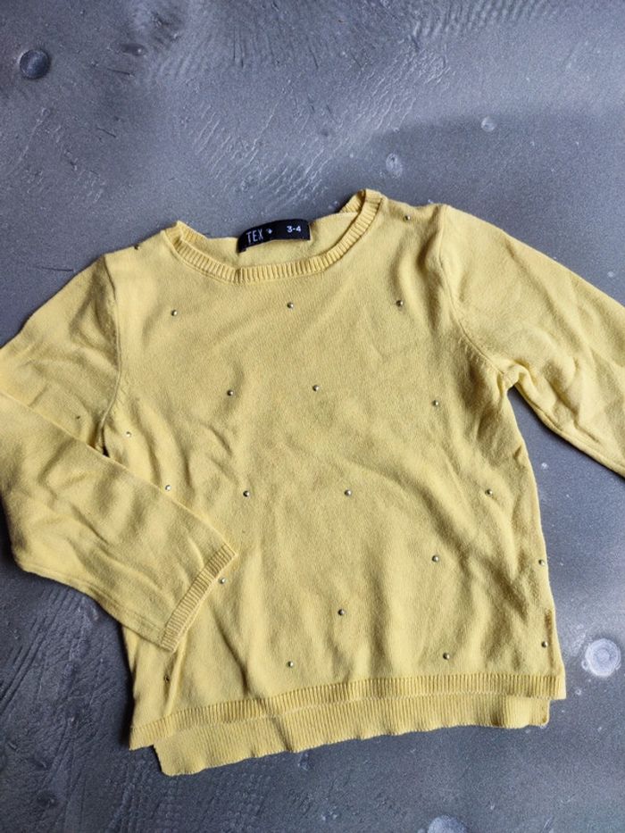 Pull de marque Tex 3/4 ans Petites tâches sur le devant voir photos Sa couleur est jaune #vente763ansf #vente764ansf #fille3ans #fille4ans #pullfille3ans