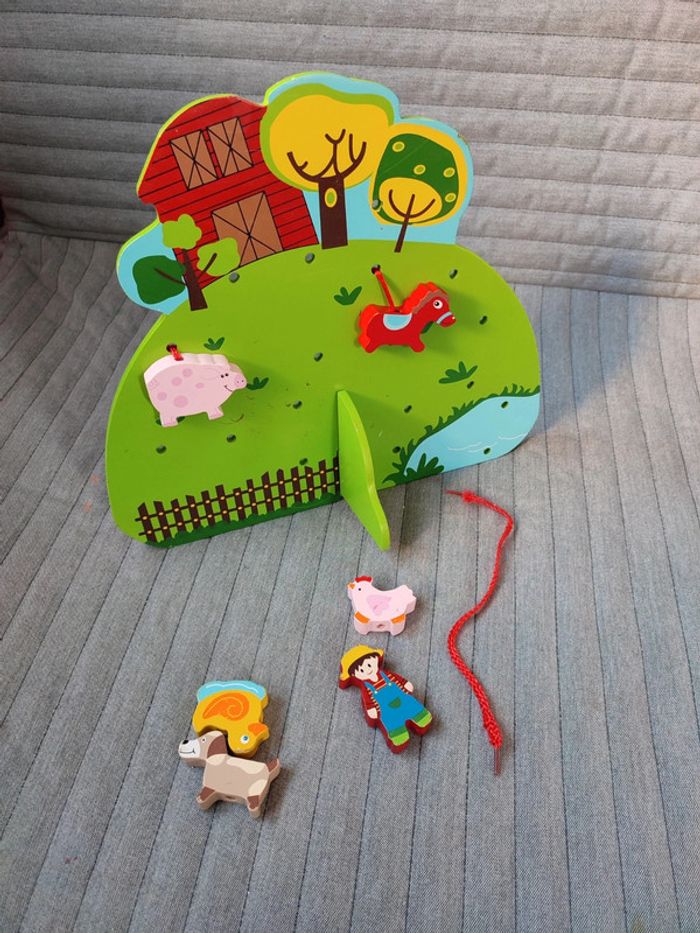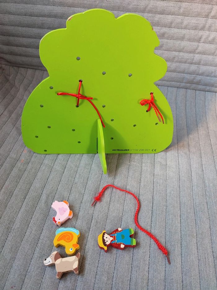 Jouet en bois avec petit personnages à attacher Quelques rayures voir photos #vente76jouet #jouetenbois #jouetaaccrocher #jouetverbaubet