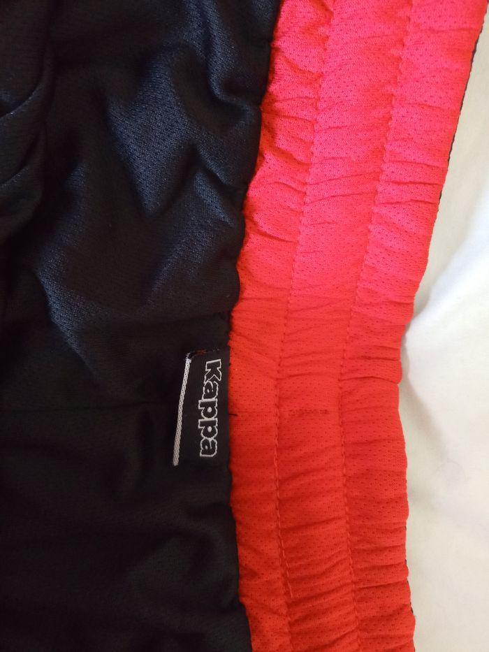 Bermuda pour hommes Taille XXL "Kappa" Couleur: Rouge et Noir Pas de poches Taille entièrement élastiquée avec cordon de serrage, s'enfile Entièrement doublé Dimensions: longueur 56cm - Taille non étirée 45cm et étirée 52cm Matière: 100% Polyester Bermuda Neuf, jamais porté