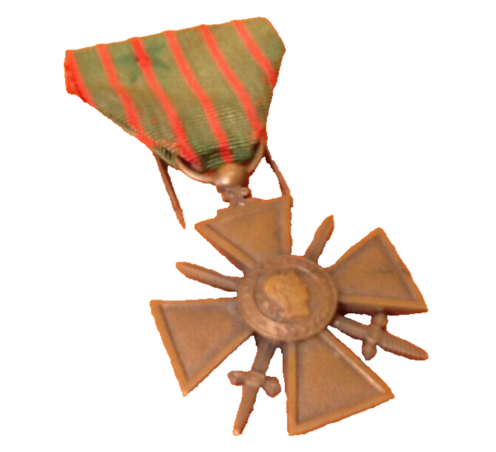 Médaille Militaire République Française Croix de Guerre (1914-1918) Longueur avec ruban : 80mm Largeur : 35mm Poids : 20grs