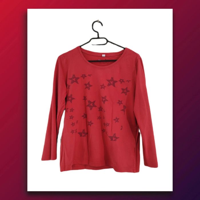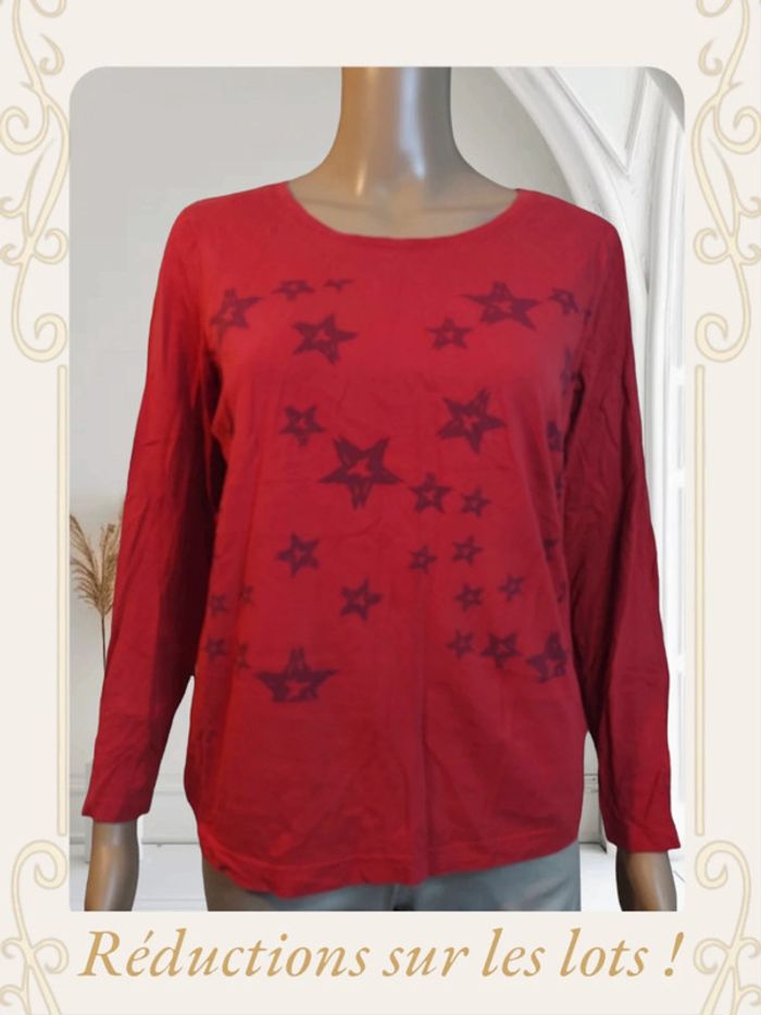 Tee shirt rouge manches longues motif etoiles En parfait état 🔥 Les réductions sont activées sur les lots 🔥 💖 N'hésitez pas à consulter les autres annonces de mon dressing triées par # et par catégories, et à faire un lot pour optimiser les frais d'envoi et bénéficier de réductions 😊 🚀Pour un envoi plus rapide, privilégiez Mondial Relais 🚀 👩#bilivineb_hauts 👩#bilivineb_haut_taille36 👩#bilivineb_femme36