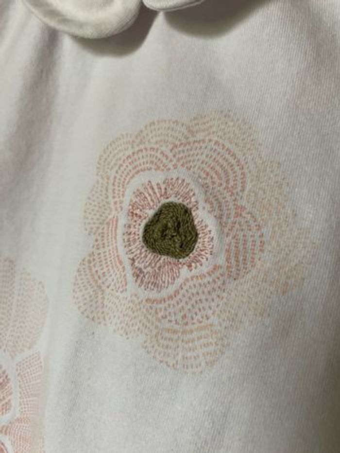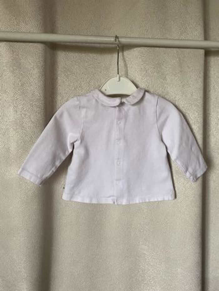 T-shirt brassière col Claudine Blanc brodé 95% coton 5% elasthane Taille 3 mois 59 cm Obaibi