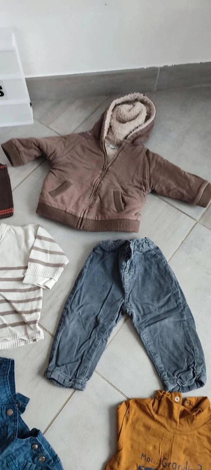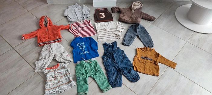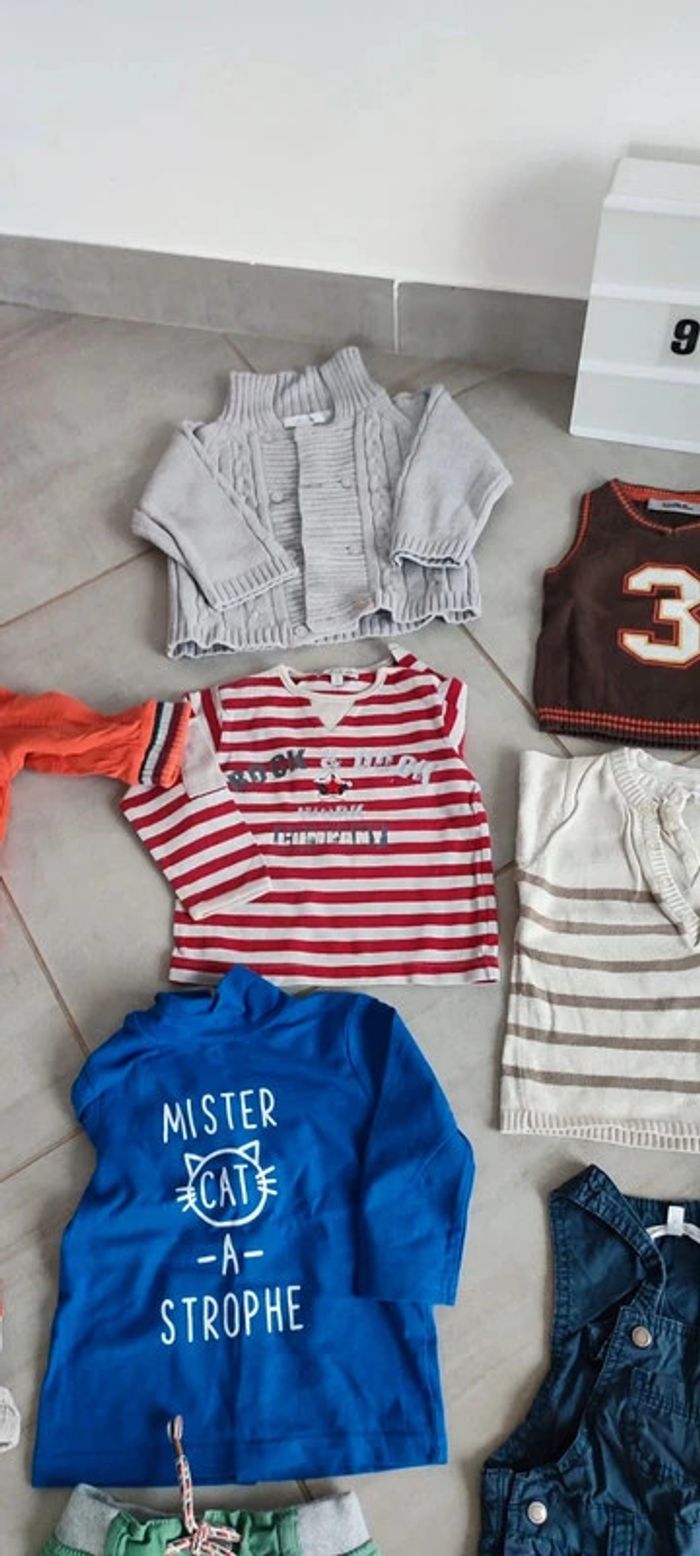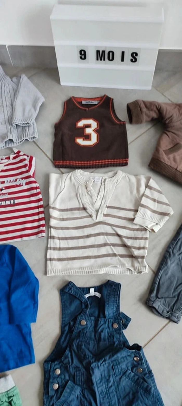 Lot de vêtements garçon 9 mois Lot demi saison le manteau dpam est abîmé ainsi que le t-shirt dpam voir les photos