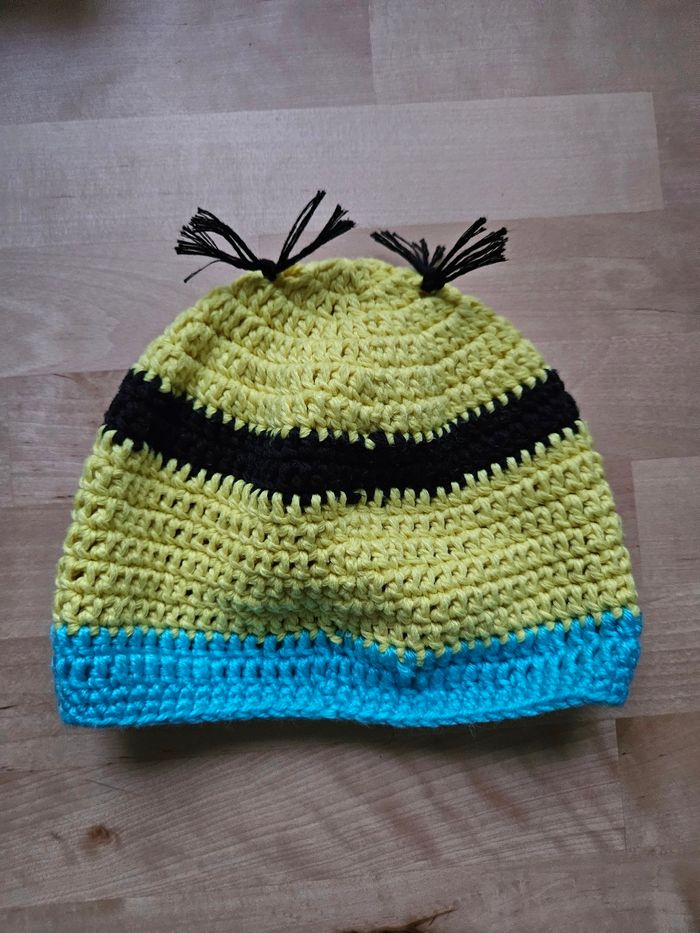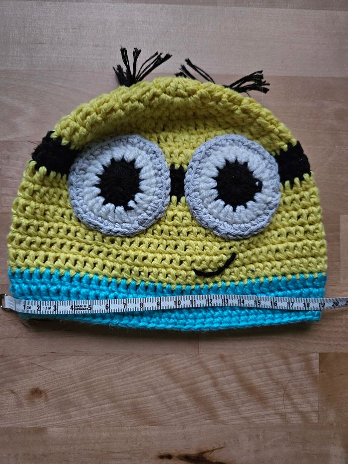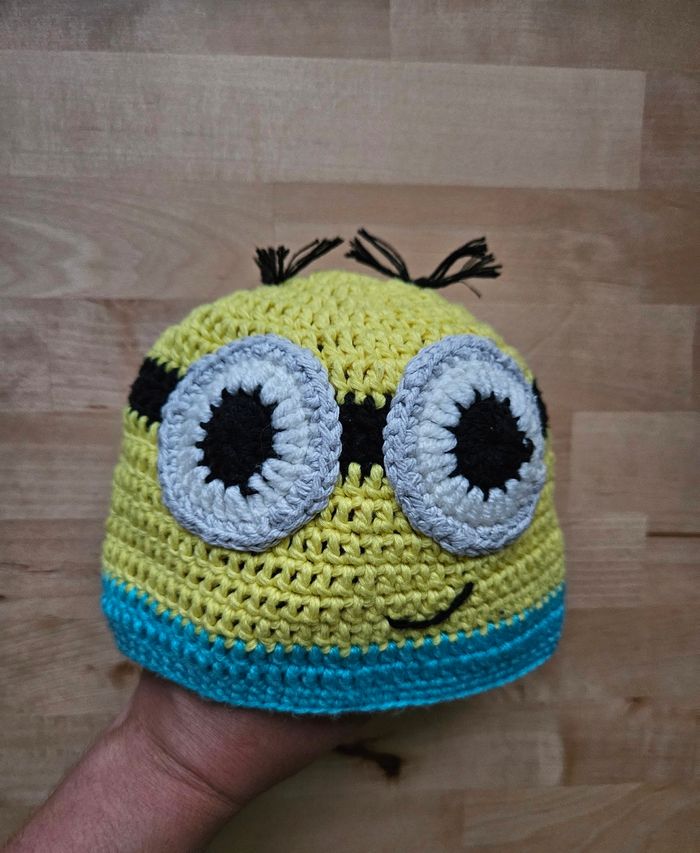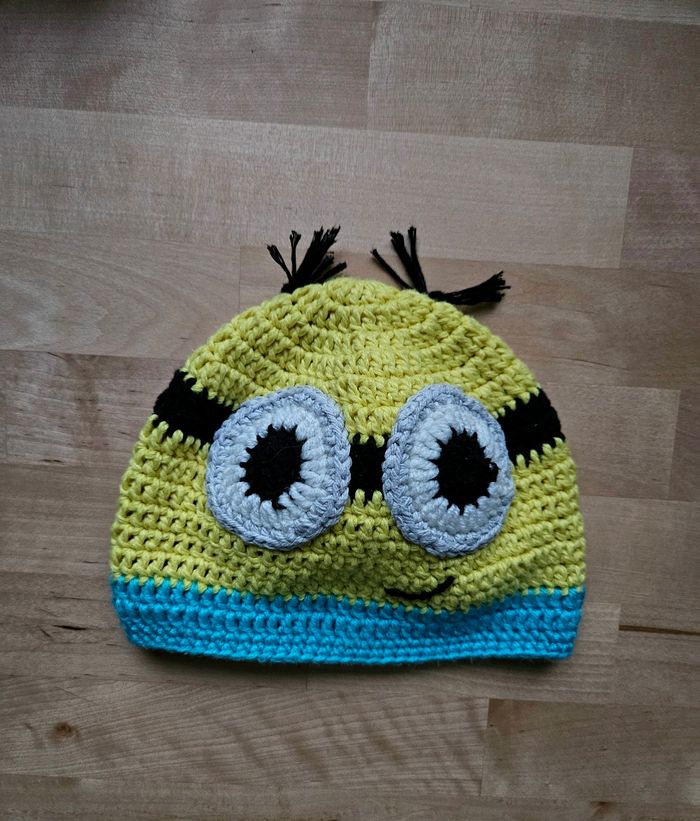 Bonnet Minions en crochet, fait main (pas de taille spécifiée donc, mais dimensions sur les photos) Porté 1 fois Remise en main propre possible sur Bordeaux N'hésitez pas si vous avez des questions. En prenant plusieurs articles de ma vitrine, vous bénéficiez de remises.