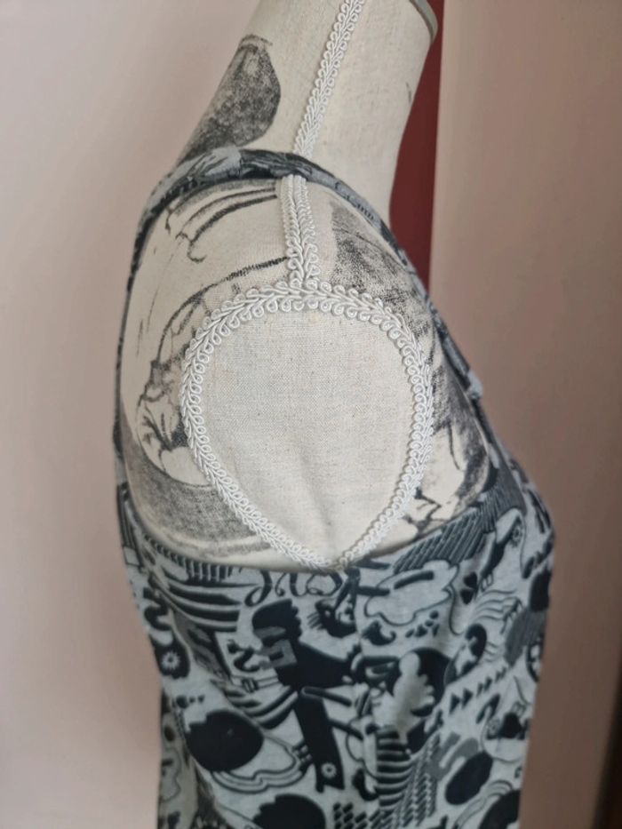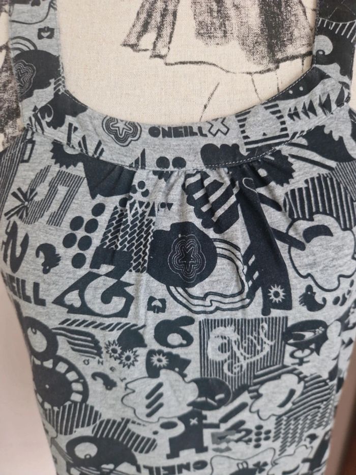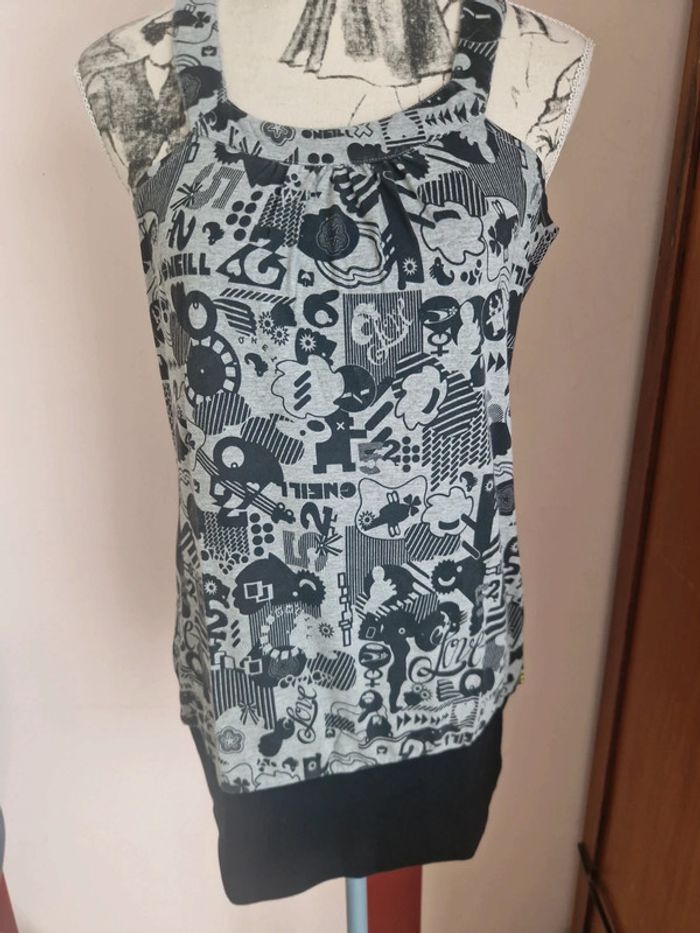 Tunique noire et grise avec motif, à bretelles, taille L, de la marque O'neill, en très bon état Mesure aisselles : 45 cm