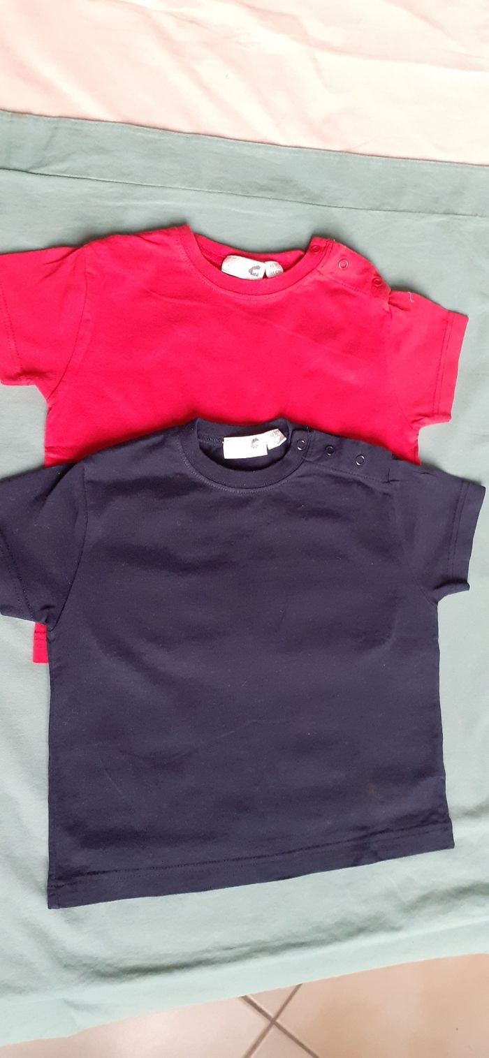 Vends 2 tee-shirts manches courtes 1 rouge 1 bleu marine marque Kiabi 18 mois