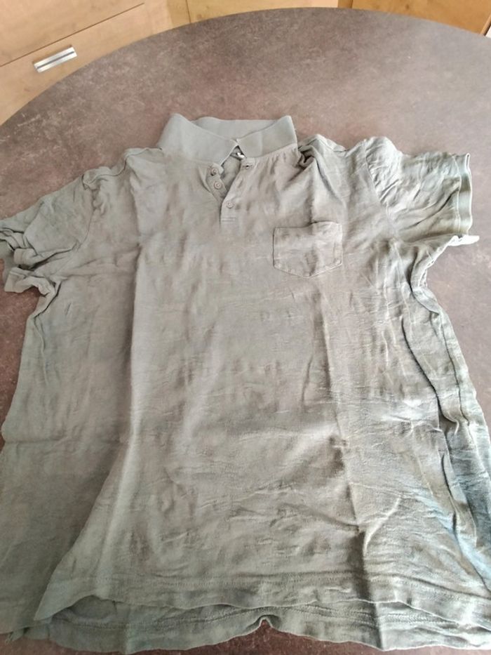 Polo taille L homme de couleur kaki en coton. En bon état. Couleur un peu estompée. Il n'a plus son étiquette composition. Ikks.