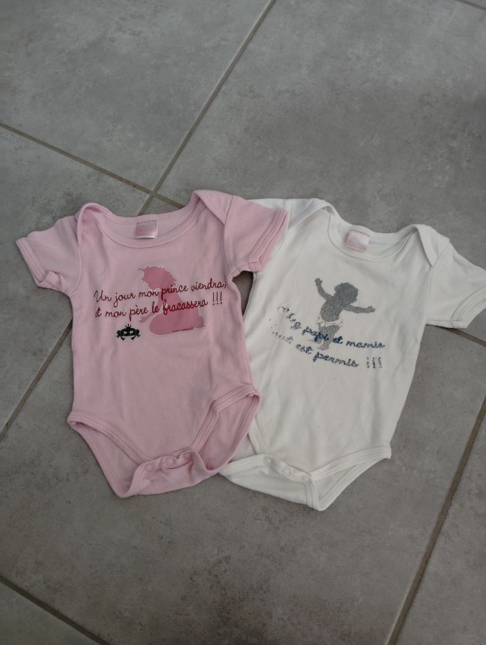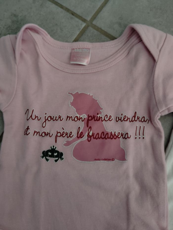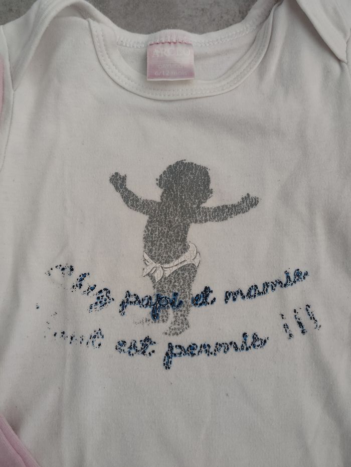 Bodys 6-12 mois L'écriture du body blanc est effacé (voir photo) Bon état