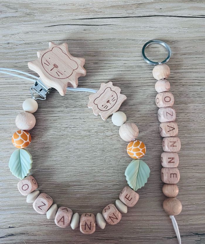 Attache tétine personnalisé en silicone ou en bois au souhait de l’acheteur . Personnalisable au choix de l’acheteur que ce soit la couleur comme le prénom ou le thème . Le fil est doublé pour plus de sécurité tout le long de l’attache tétine. N’hésitez pas à me demander et regarder mon dressing. Une photo vous sera envoyée avant l’expédition pour vous ayez un aperçu du rendu. Tous les produits sont réalisés avec du materiel spécial conçu aux bébés , enfants.