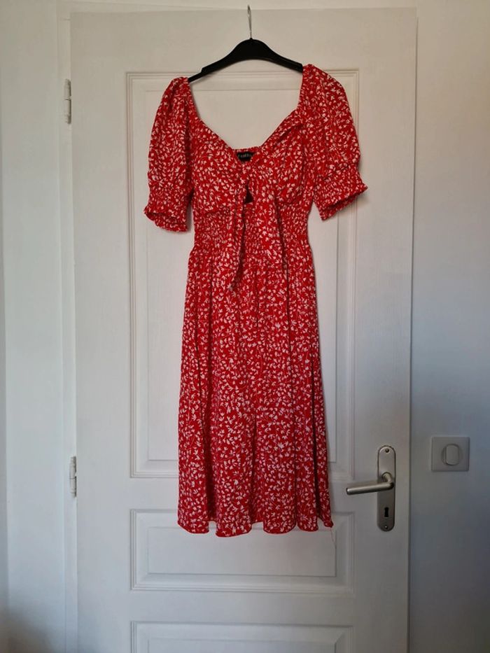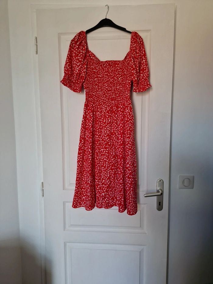 Robe rouge à fleur blanches parfait état taille S/M rembouré à la poitrine