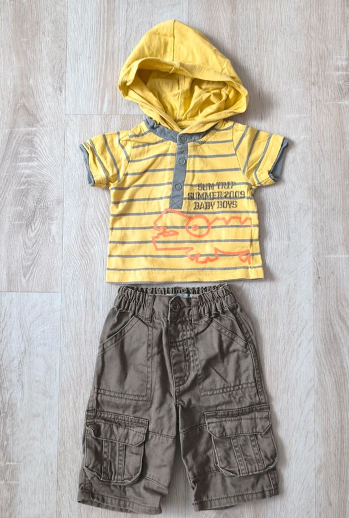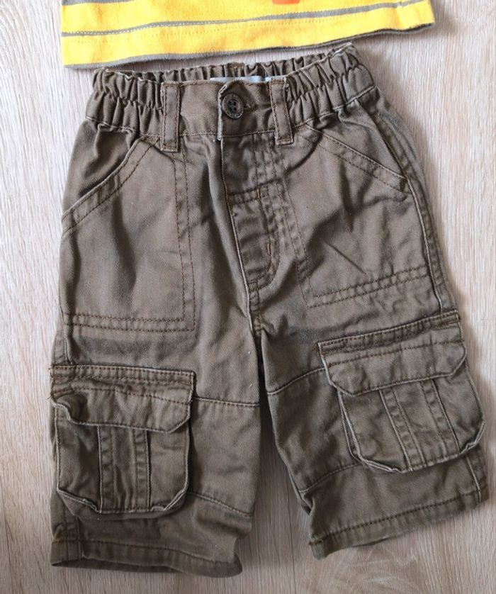 ⭐🐊Petit haut de couleur jaune avec rayures grises Petit crocodile Pantalon vert kaki 🧵 Marque: Tape à l'oeil 💙 Maison non fumeurs, sans animaux 🧡🧡 #celinefr3m 🧡🧡 ☝🏻pour voir tout mon 3 mois cliquez ici