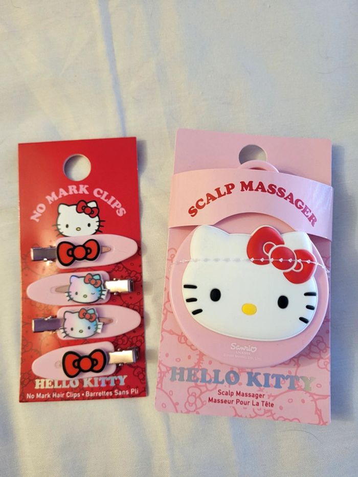 PAS DE VINTED GO SVP 🎀Ensemble de coiffure Hello Kitty (Licence Sanrio) : ❣️1 masseur du cuir chevelu ❣️1 lot de 4 barrettes 🌸💕🌸 JAMAIS UTILISÉS 💕🌸💕