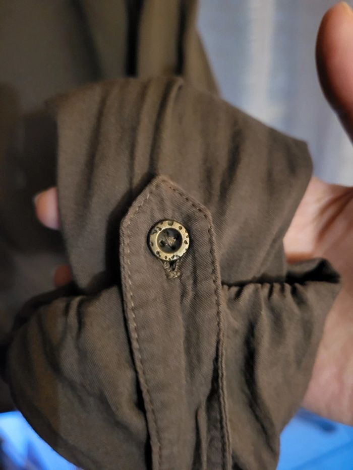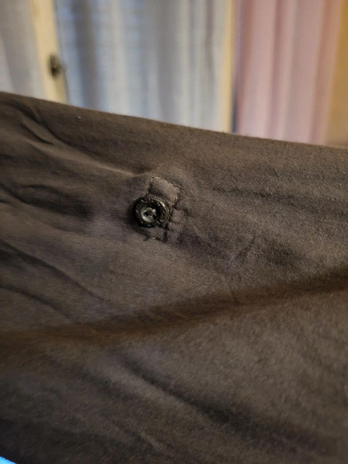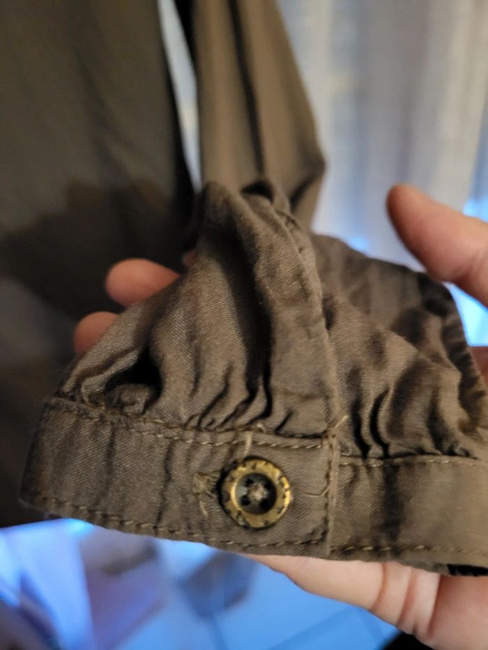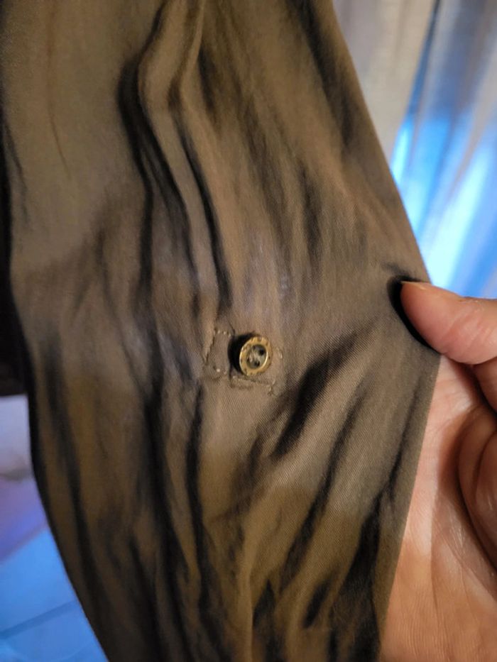 Blouse légère couleur taupe, manches longues mais pouvant être racourcies par le biais d'un bouton plus haut. Elle est super belle, tissu agréable mais j'ai jamais pu la porter 🫤 Pour moi il s'agit d'une taille 38. (Indiqué taille 2 sur l'étiquette) EXCELLENT ÉTAT.