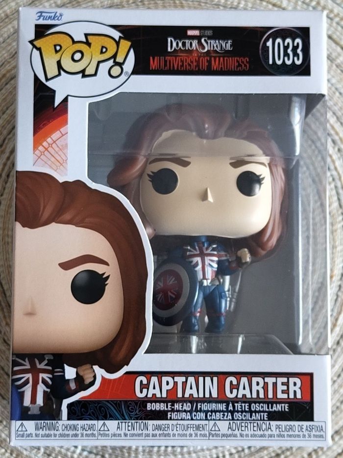 🧸 Figurine Pop n°1033 Captain Carter. Doctor Strange in the Multiverse of Madness. Marvel Studios. 🧸 Taille standard = 10cm 🧸 Marque Funko 🧸 Neuf dans la boîte d'origine. Boîte légèrement abîmée.