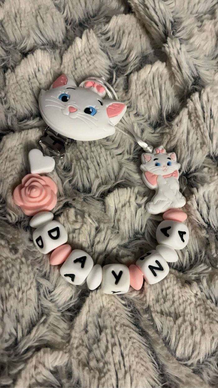 Attache tétine personnalisé en silicone ou en bois au souhait de l’acheteur . Personnalisable au choix de l’acheteur que ce soit la couleur comme le prénom ou le thème . Le fil est doublé pour plus de sécurité tout le long de l’attache tétine. N’hésitez pas à me demander et regarder mon dressing. Une photo vous sera envoyée avant l’expédition pour vous ayez un aperçu du rendu. Tous les produits sont réalisés avec du materiel spécial conçu aux bébés , enfants.