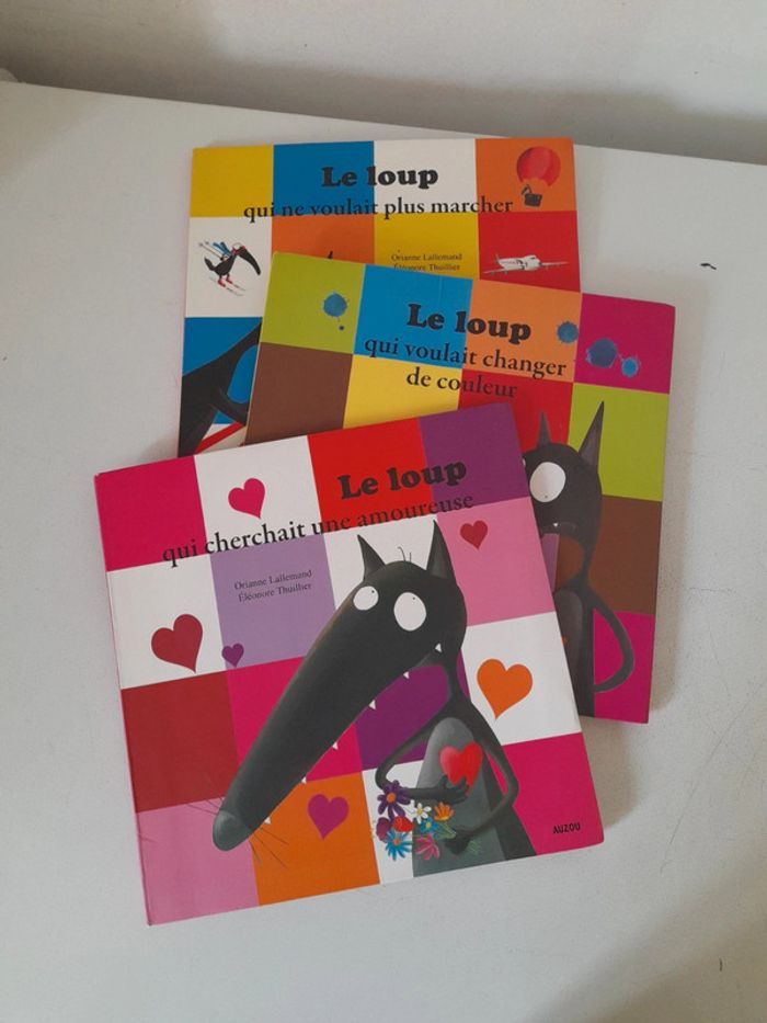 Lot de 3 albums le loup Le loup qui voulait changer de couleur Le loup qui ne voulait plus marcher Le loup qui chercher une amoureuse Mes p'tits albums Thèmes abordés : les véhicules- les saisons - l'amour - l'acceptation de soi Les 3 livres présentent des traces d'usures normales dues à plusieurs lectures. Les couvertures présentent quelques traces de pliures. Les intérieurs sont propres et en bon état