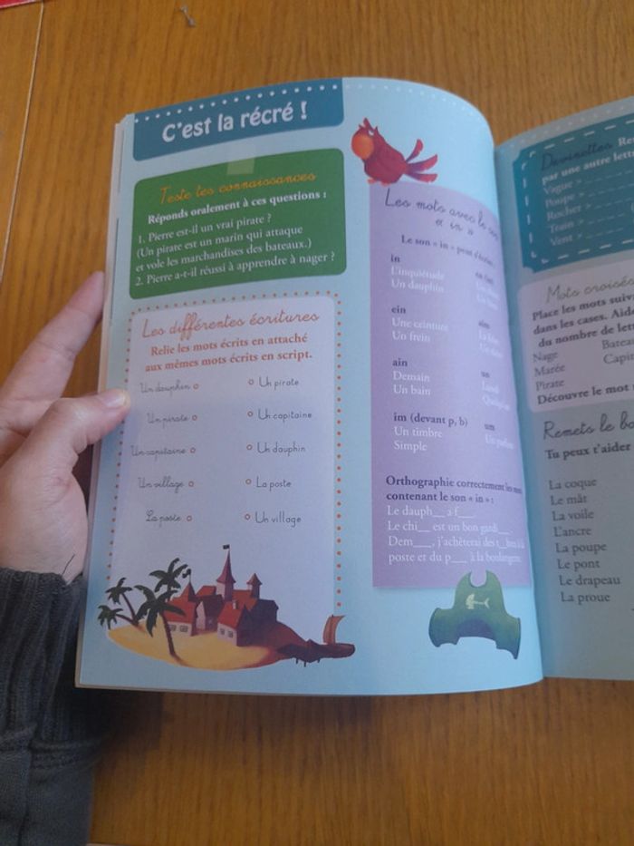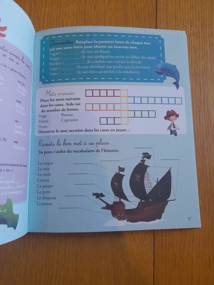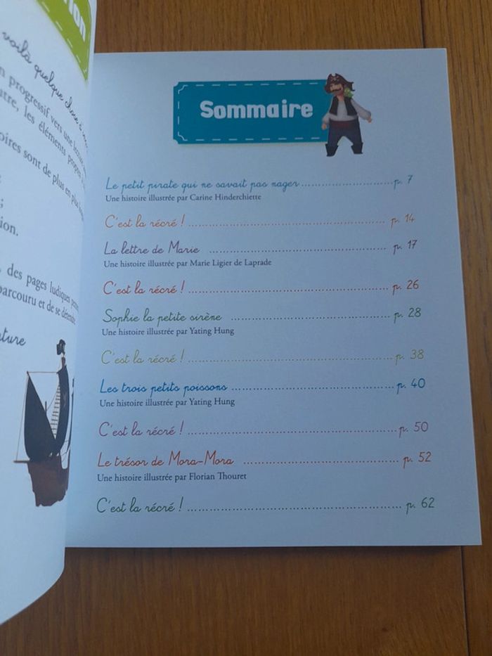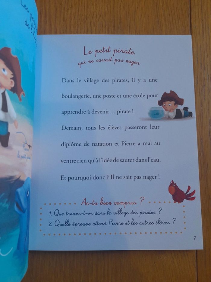 Livre je lis comme un grand Histoires de pirates, de sirènes et d'îles au trésor. Jeune lecteur CP-CE1 Très bon état proche du neuf, 5 histoires avec des questions de compréhension de texte et pages de jeux en fin d'histoire (non faits) Lire tout seul en s'amusant ! Un livre progressif de 5 histoires qui prend en compte l'évolution de la lecture chez l'enfant en CP-CE (temps de lecture, difficulté, etc.)A chaque page, des encadrés de vocabulaire et des questions de compréhension, à la fin de chaque histoire, une double page de jeux. Une institutrice en CP, annick Gabillet est conseillère sur la collection