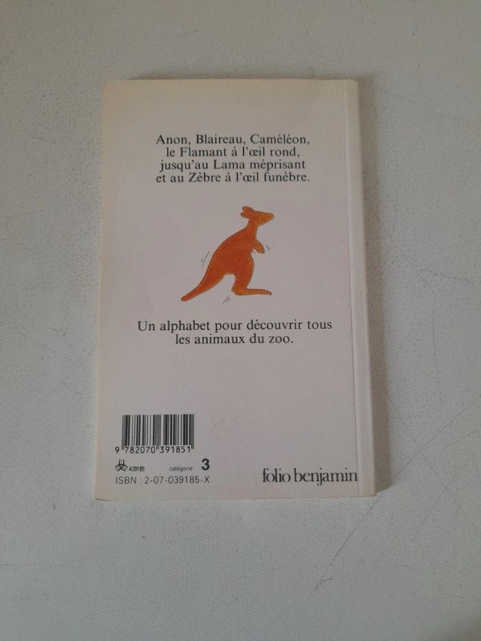 Abc zoo Folio benjamin Album en bon état de 1987 Anon, blaireau, caméléon, le flamand à l'œil rond, jusqu'au lama méprisant et au zèbre à l'œil funèbre. Un alphabet pour découvrir tous les animaux du zoo
