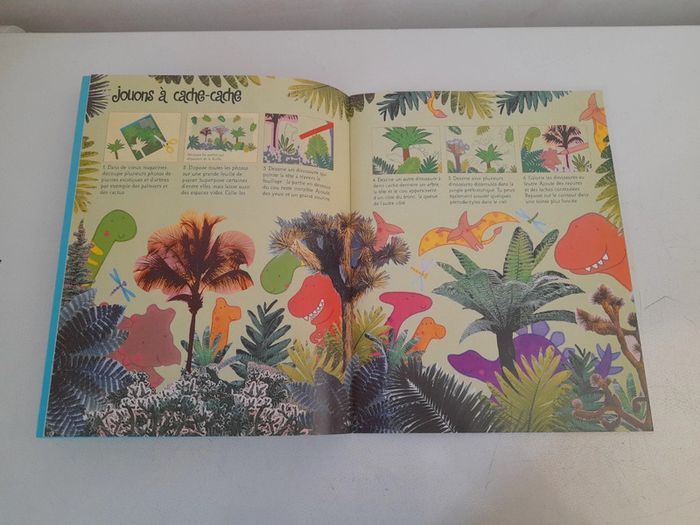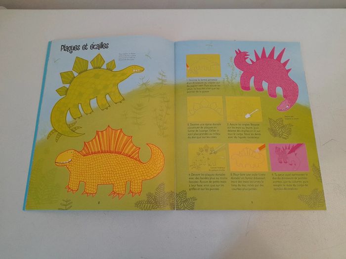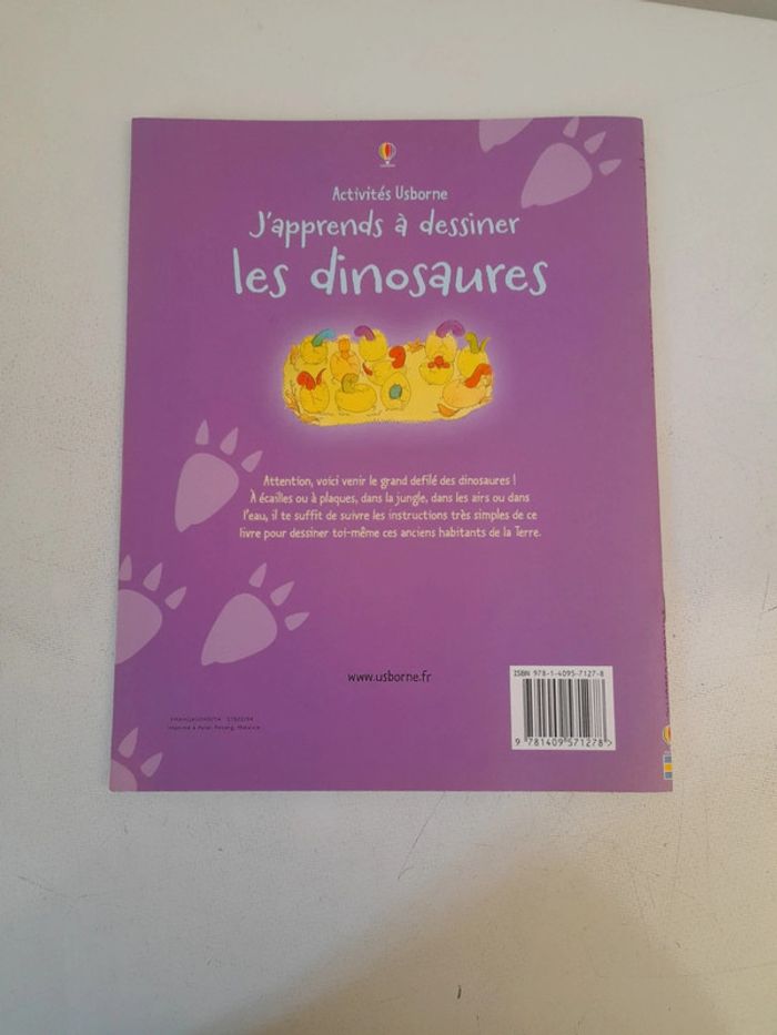 Livre activités usborne Excellent état Attention, voici venir le grand défilé des dinosaures ! A écaille ou à plaques, dans la jungle, dans les airs ou dans l'eau, il te suffit de suivre les instructions très simples de ce livre pour dessiner toi-même ces anciens habitants de la Terre.