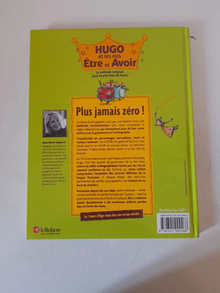 Livre 3 en 1 regroupant les trois tomes d'humour réunis dans une version enrichie Les fautes d'orthographe ne sont pas une fatalité. Grâce à ce conte grammatical fondé sur l'imaginaire, la métaphore et le dessin, réconciliez votre enfant avec l'orthographe, aidez-le à domestiquer les accords et redonnez-lui confiance. Une méthode révolutionnaire qui a déjà conquis plus de 500 000 lecteurs. Avant de devenir la bonne fée de l'orthographe, a longtemps souffert de dysorthographie. Aujourd'hui, pédagogue et formatrice, elle nous livre les clés pour ne plus faire de fautes et transforme la grammaire en conte. Ici, pas de règles rébarbatives ni de mots complexes. Les mots et verbes s'animent et deviennent des personnages merveilleux : le roi ÊTRE est gentil et facile à vivre tandis que le roi AVOIR se montre retors. Le malicieux monsieur Troglo-temps détient quant à lui les clés du e muet... Au fil d'une aventure en neuf étapes joliment illustrées, Hugo, fort des secrets de grammaire de la fée Nina, relève les défis orthographiques lancés par les rois et reprend confiance en lui. Comme lui, votre enfant comprendra l'ensemble des accords difficiles de la langue française. À chaque étape, des exercices permettent de vérifier sa progression. La victoire est au bout du chemin !