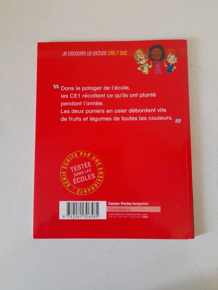 Livre en très bon état Dans le potager de l'école, les CE1 récoltent ce qu'ils ont planté pendant l'année. Les deux paniers en osier débordent vite de fruits et légumes de toutes les couleurs.