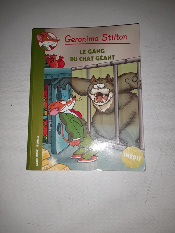 Inédit de la célèbre souris détective Geronimo Stilton Le gang du chat géant Très bon état Alban Michel Ce tome ne porte pas de numero Quelle frousse ! Un gang de voleurs et son chat géant sèment la terreur dans la ville ! Mais ce gros matou a une allure étrange... Les tableaux de maître Pablo Radévil, peintre aussi célèbre que mystérieux, se vendent comme des petits pains ! Pourtant, il faut toujours se méfier des apparences... À partir de 8 ans