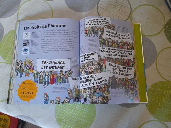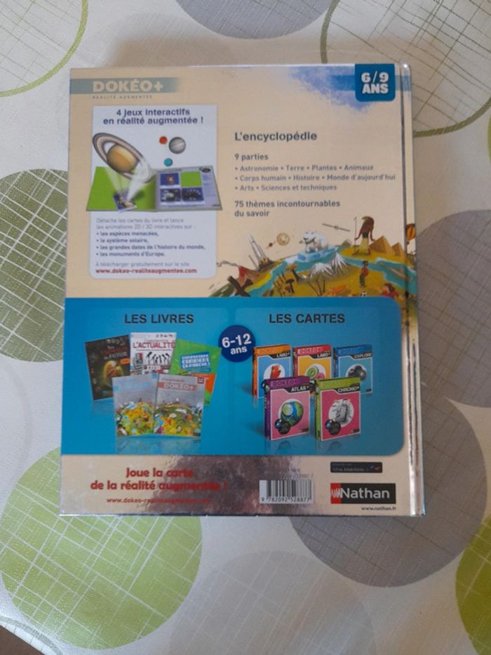 Édition Nathan de 2010 Livre en tres bon état 9 parties : Astronomie, Terre, Plantes, Animaux, Corps humain, Histoire, Monde d'aujourd'hui, Arts, Sciences et techniques. 75 thèmes incontournables du savoir. Il manque les 4 cartes de jeux pour la réalité augmentée