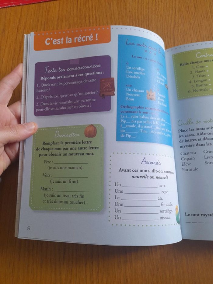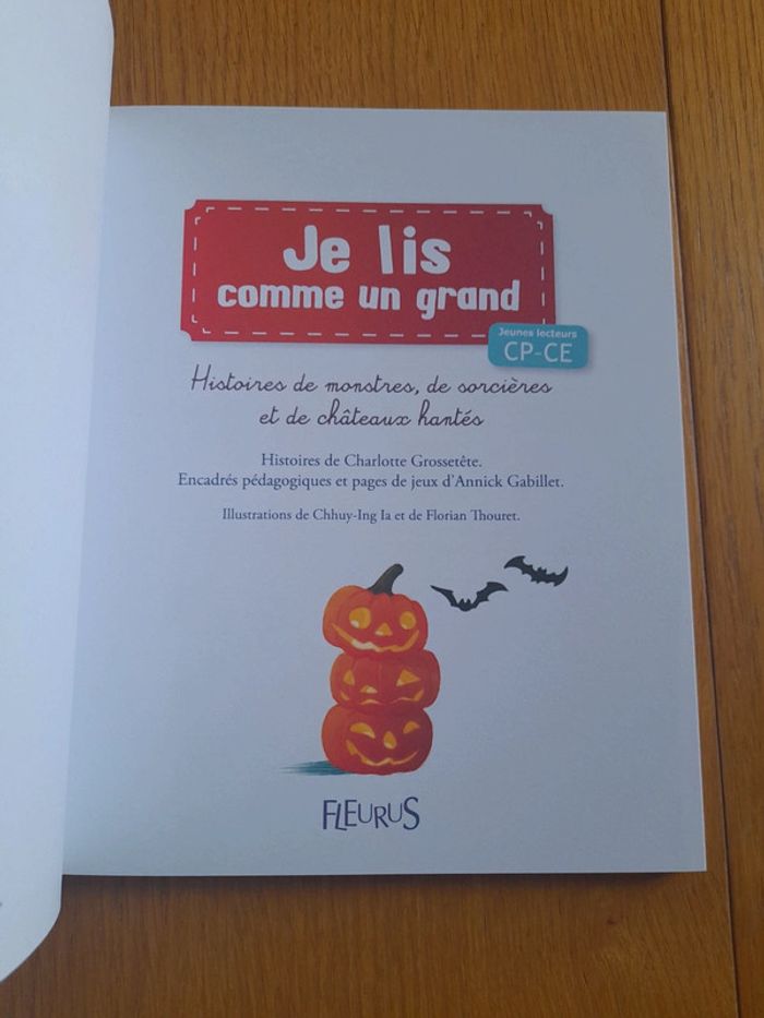 Livre je lis comme un grand Histoires de monstres, de sorcières et de châteaux hantés Jeunes lecteurs CP-CE1 Très bon état, 5 Histoires avec des questions de compréhension de texte et pages de jeux en rapport avec l'histoire lue (jeux non faits) Lire tout seul en s'amusant ! Un livre progressif de 5 histoires qui prend en compte l'évolution de la lecture chez l'enfant en CP-CE (temps de lecture, difficulté, etc.)A chaque page, des encadrés de vocabulaire et des questions de compréhension, à la fin de chaque histoire, une double page de jeux. Une institutrice en CP, annick Gabillet est conseillère sur la collection