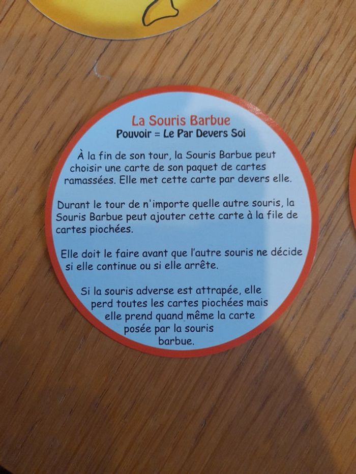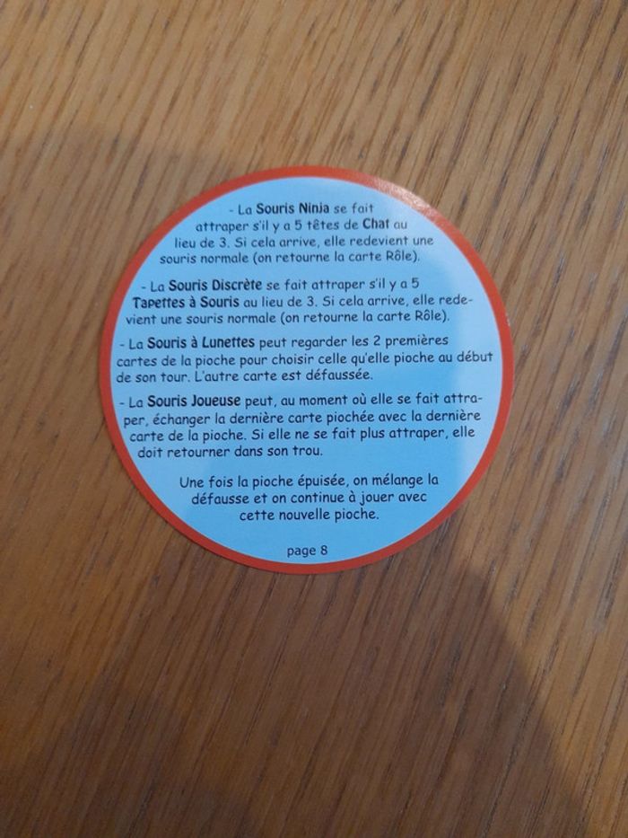 – des cartes rôles donnant des capacités aux souris (souris ninja, souris discrète, souris gourmande, souris chapardeuse, souris à lunettes et souris joueuse).