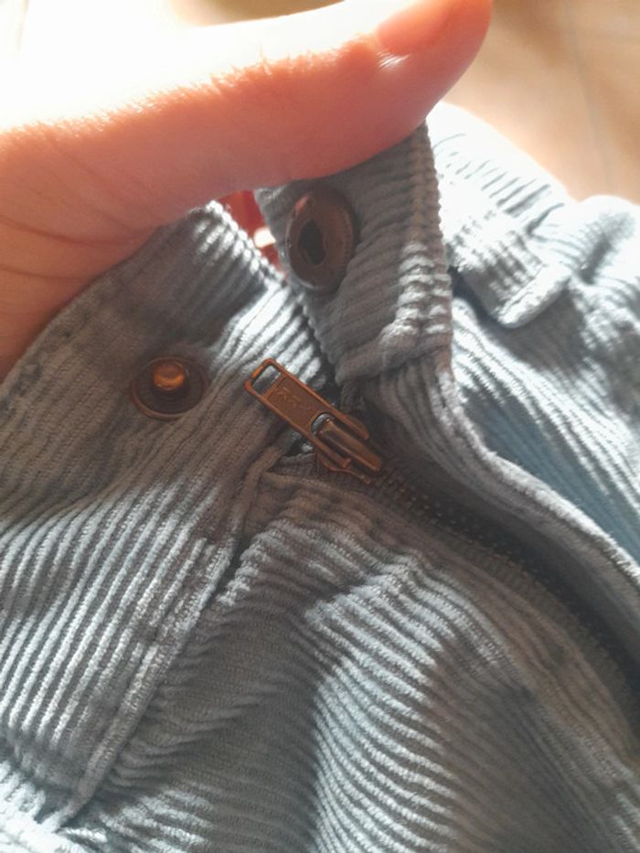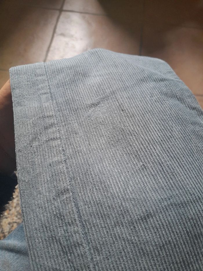 Pantalon coupé droite (regular fit) Marque kiabi Taille 9 ans 132-137 cm Matière 100% coton velours côtelé léger Taille ajustable avec élastiques Fermeture éclaire braguette ok Très bon état hormis les genoux qui ont de très légères marques de frottement.