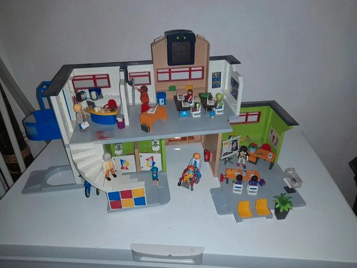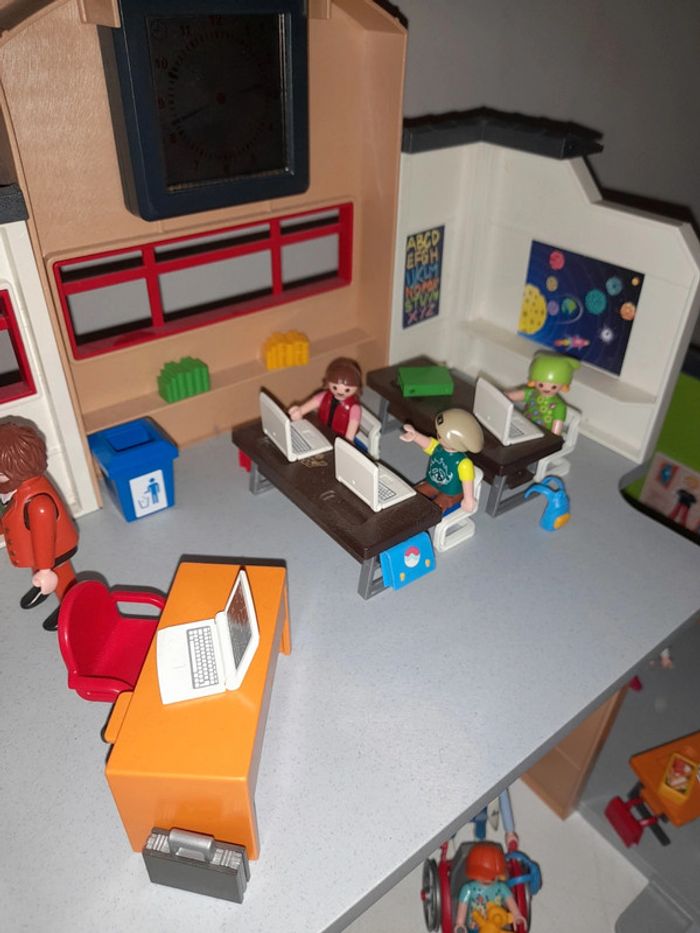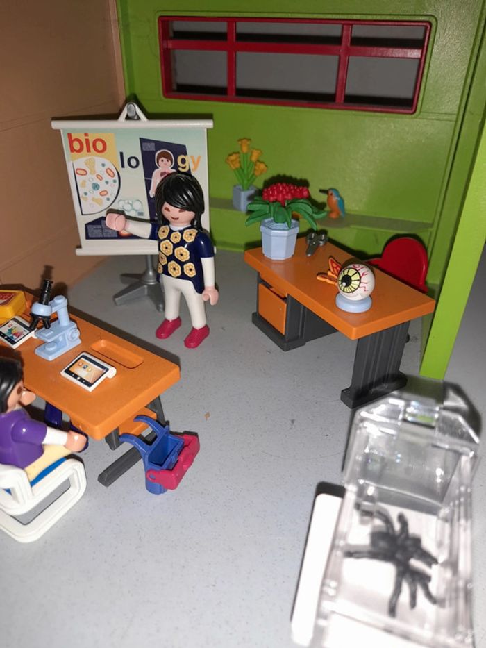 Au rez-de-chaussée, les enfants peuvent ranger leurs affaires dans les casiers avant d'aller en classe de sciences. Au premier étage, il y a l'accueil et la classe d'informatique. On peut y accéder par les escaliers ou par ascenseur. Comprend neuf personnages, deux salles de classes, un escalier et un ascenseur.