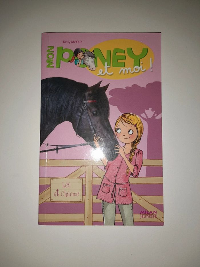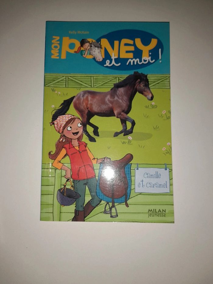 Lot de quatre petits romans Collection mon poney et moi - Marine et bijou - Manon et Polisson - Léa et Charme - Camille et Caramel Tous en très bon état, une annotation sur la page de garde de Marine et Bijou (nom et prénom).