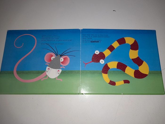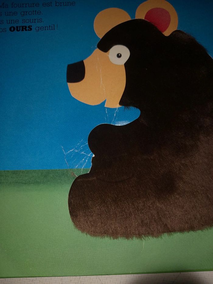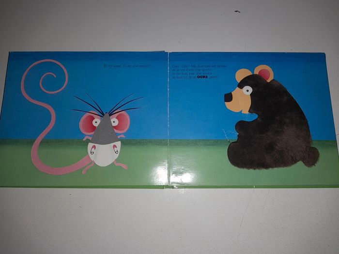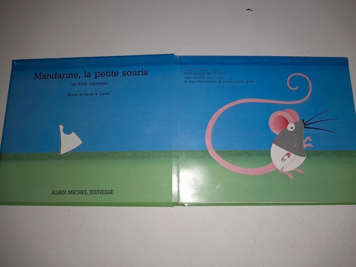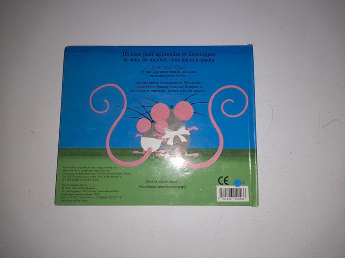 Livre à toucher / livre à caressée Mandarine la petite souris de Noëlle et David A. Carter Livre en bon état général, un petit défaut sur l'ours où il y a un petit morceau qui commence à se déchirer : voir photo.